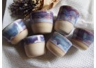 Jemný a nežný kalíšek, spíše do šířky. Kombinace krémové a fialkové glazury. Ruční práce, u které se prolíná řemeslo a srdce.